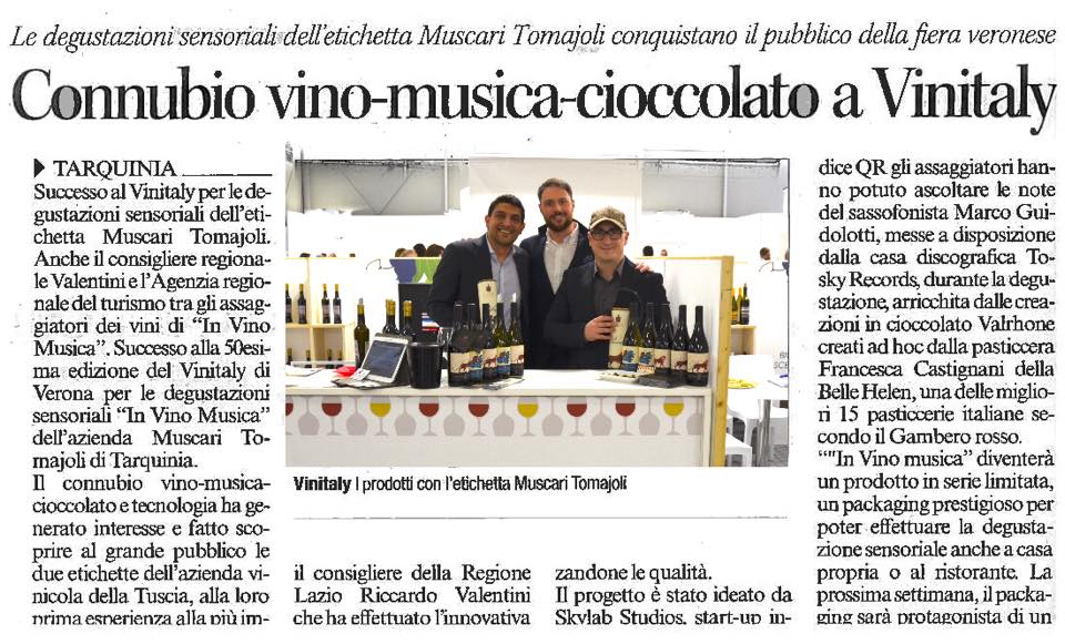 Tosky Records at Vinitaly 2016. We were so happy and proud to be present at Vinitaly International Fair in Verona (April 2016) in collaboration with Skylab Studios and the winery Azienda Muscara Tomajoli. They gave their support with technologies and wines, we did the music support with our artist Marco Guidolotti 🙂